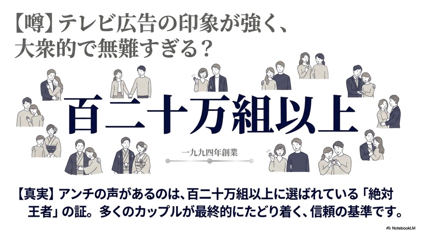 しかし、この「日本中で非常に多くの人に選ばれている」という圧倒的な普及率こそが、一部の層にはネガティブに作用してしまうんですね。「友人や職場の同僚とブランドが被りやすい」「みんなが持っている大衆的なブランドだから特別感や個性がない」という心理が働き、それが「ありふれた無難なブランドを選ぶのは恥ずかしい」という感情に変換されてしまっています。見方を変えれば、アンチが存在するということは、それだけ市場で圧倒的なシェアを獲得している絶対王者の証でもあり、多くのカップルが最終的にたどり着く信頼のスタンダードであると言えます。
