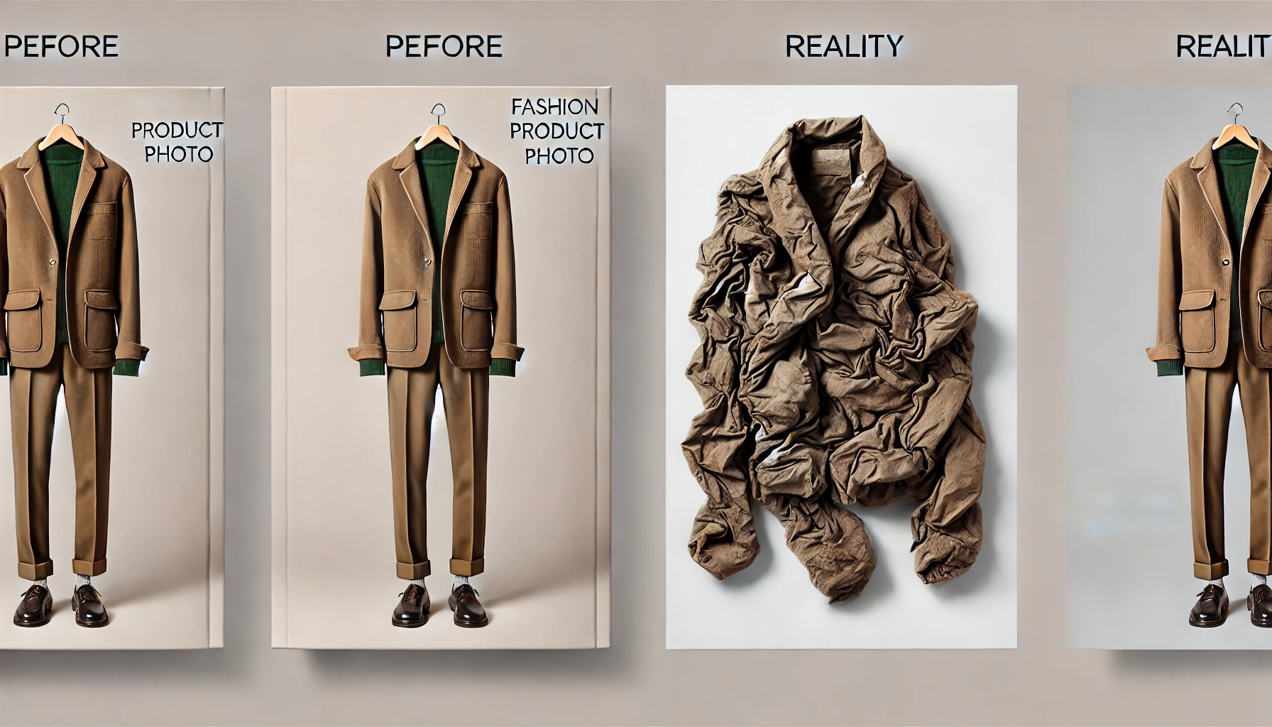 プロのモデルさんが着て、プロが撮影した写真は、素材の安っぽさが「光(ライティング)」で巧みに隠されてるんですよね。実物を見て「あれ…?」ってなる。