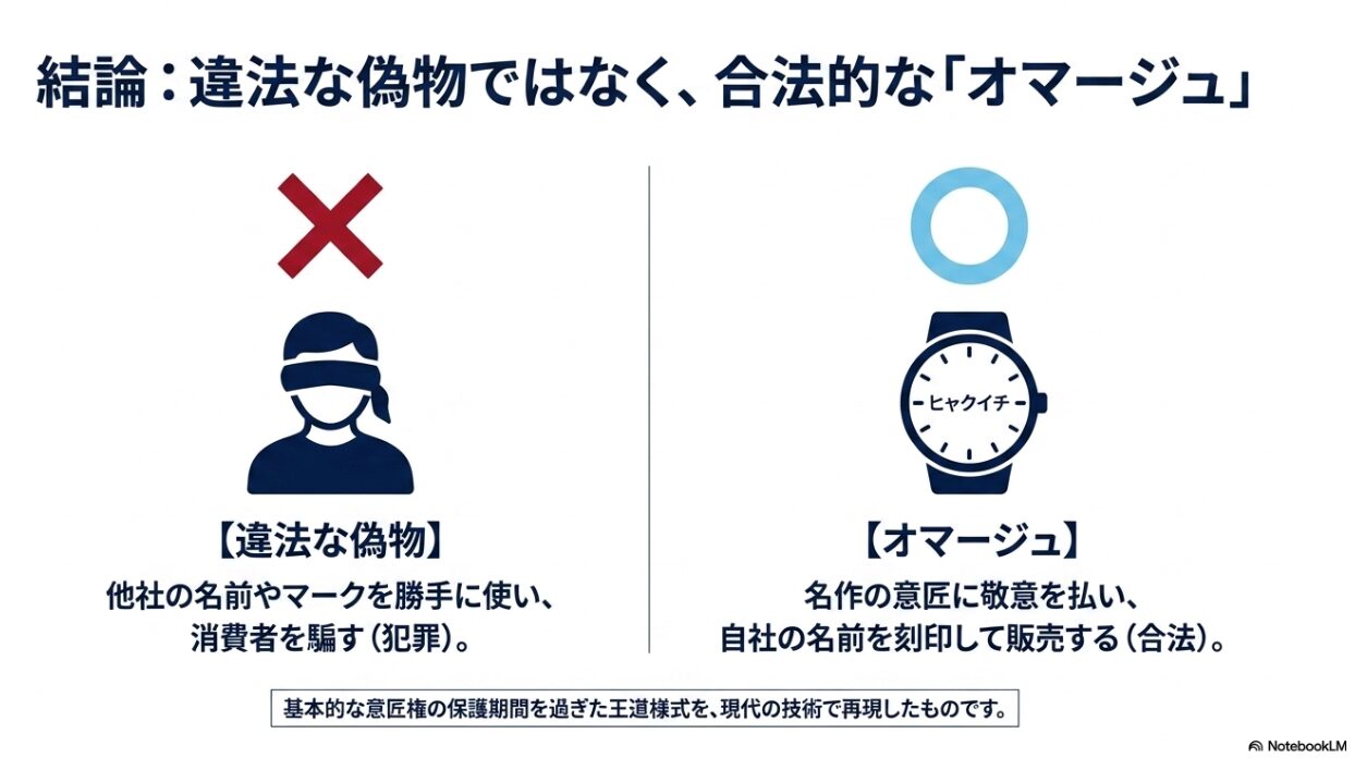 • ヒャクイチの時計が法的なパクリではなくオマージュである理由