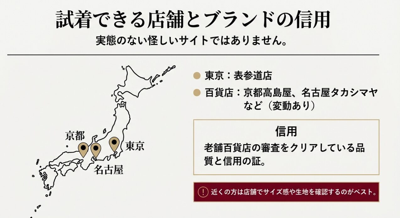 特筆すべきは、高島屋のような老舗百貨店に入っているという事実です。これは、ブランドとしての社会的信用や品質が一定の基準を満たしていることの証明でもあります。「実態のない怪しい通販サイトではないか?」という不安を持っている方にとっては、大きな安心材料になるはずです。