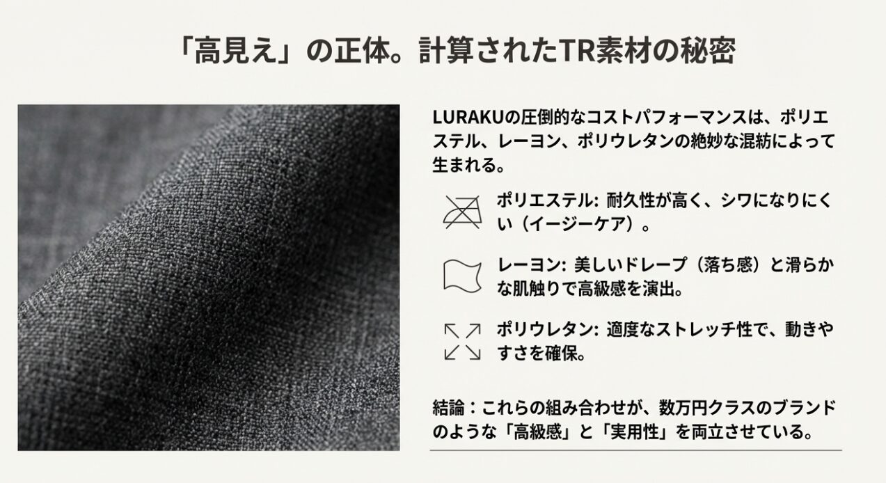 LURAKUの評判を語る上で外せないのが、圧倒的な「コストパフォーマンス」と「素材の質」です。多くのユーザーが口を揃えて「値段以上のクオリティ」「高見えする」と評価していますが、これには明確な理由があります。
