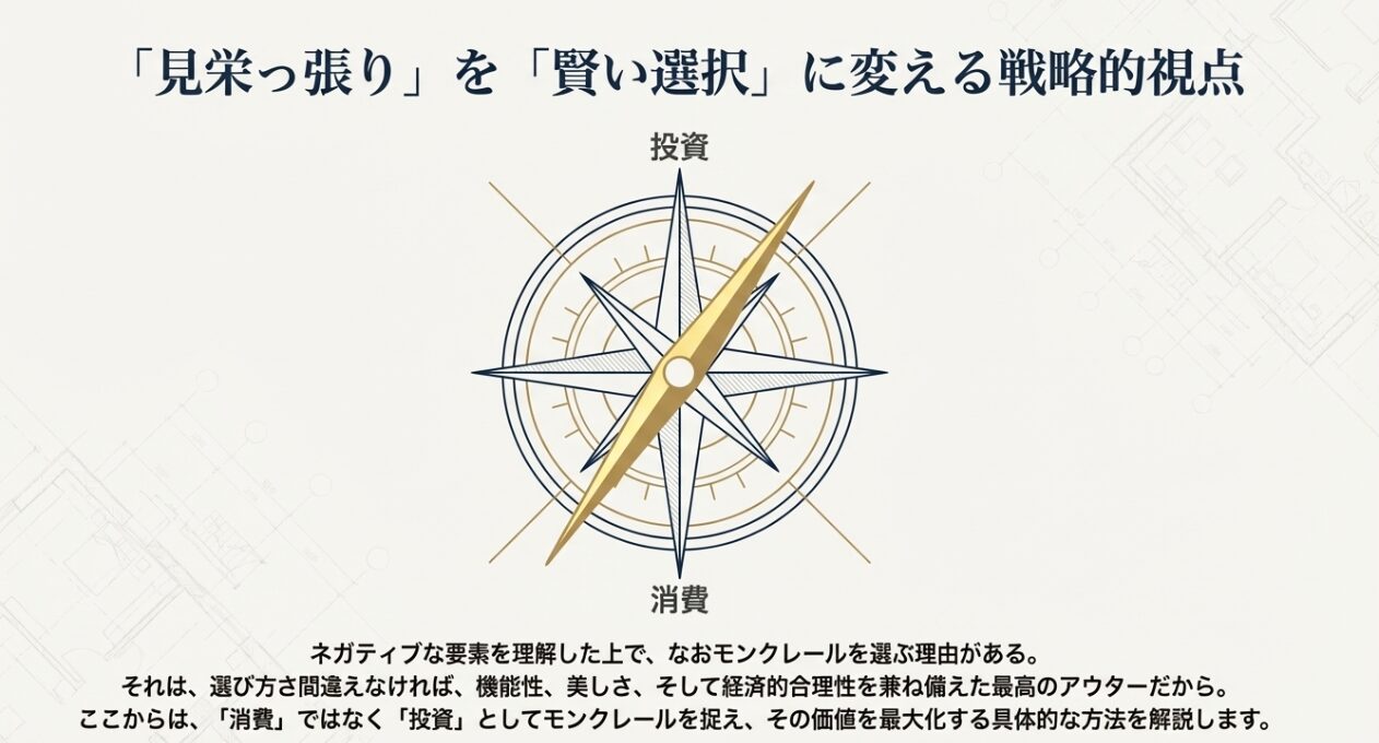 結論として、モンクレールを選ぶことは「見栄」ではなく、「本質的な価値への投資」です。