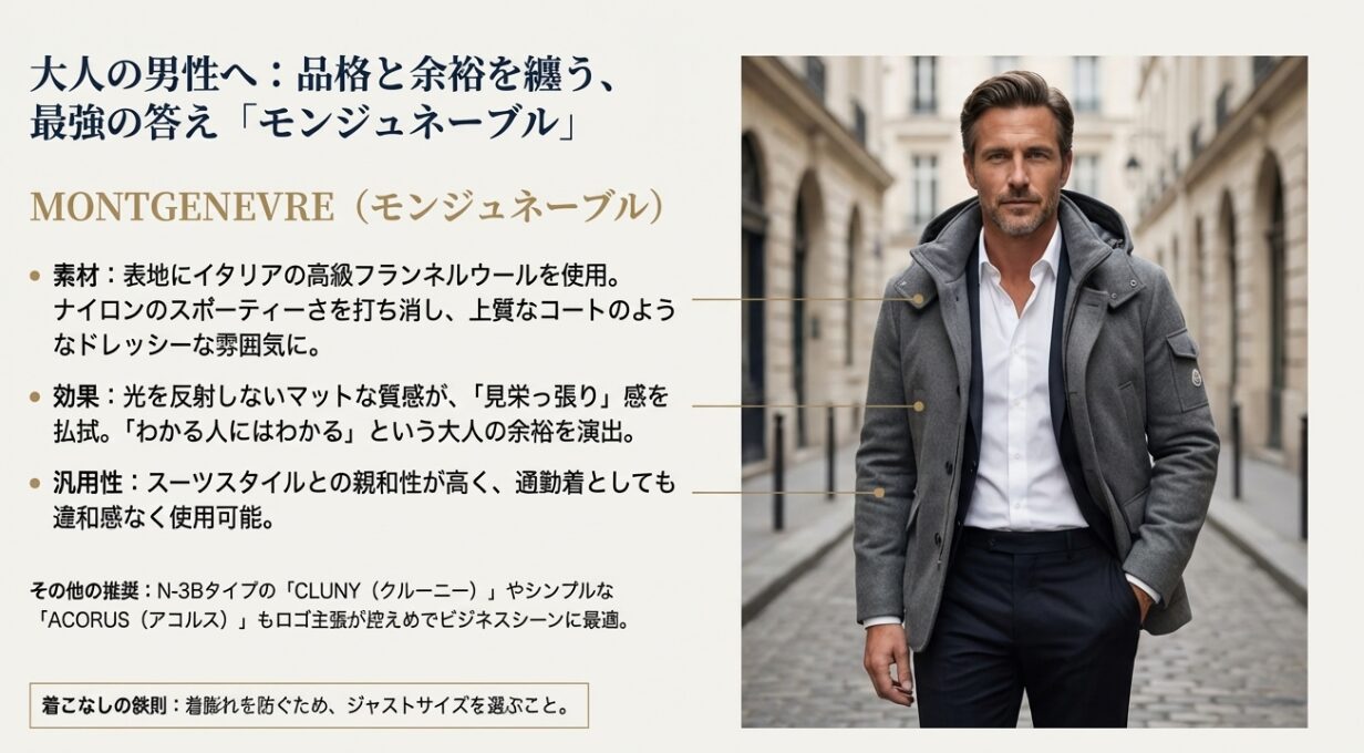 この記事では、なぜモンクレールがこれほどまでに批判の対象となりやすいのか、その心理的なメカニズムを解き明かしつつ、決して「見栄っ張り」とは言わせない、大人の知性と品格を感じさせる選び方と着こなし術を、私の実体験を交えて徹底的に解説します。