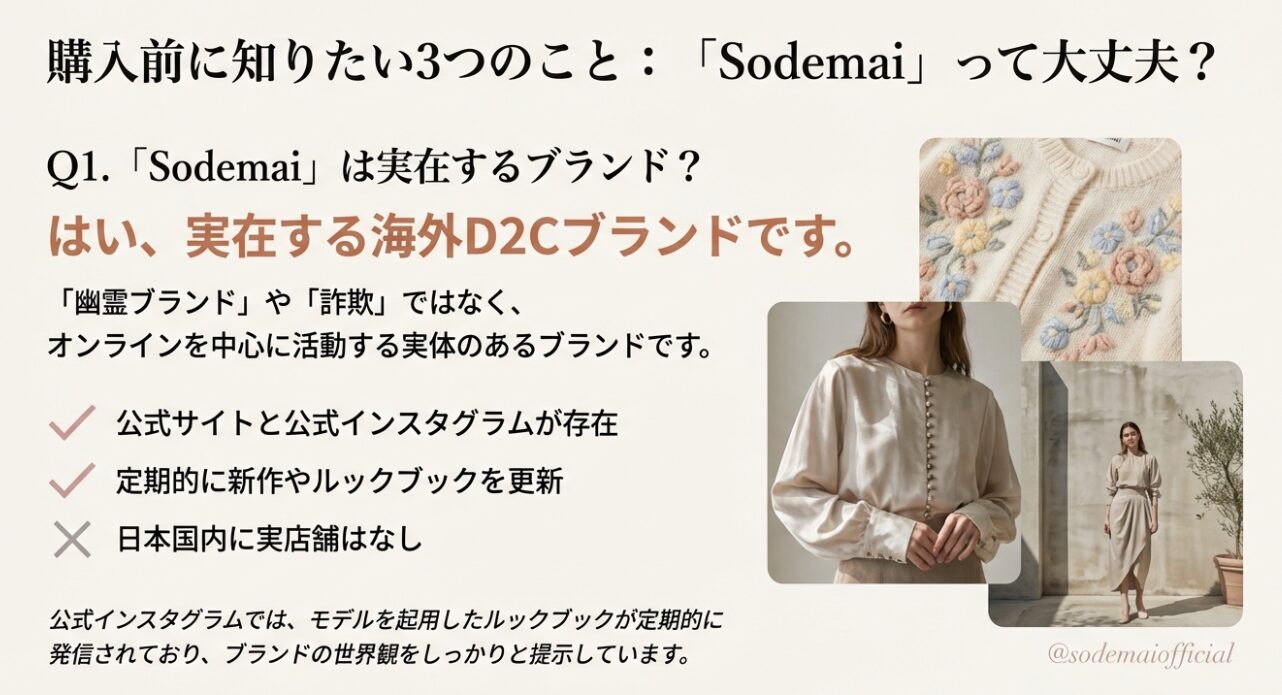 「そんなに詐欺サイトが多いなら、Sodemaiというブランド自体が怪しいんじゃないの?」と不安に思う方もいるかもしれません。