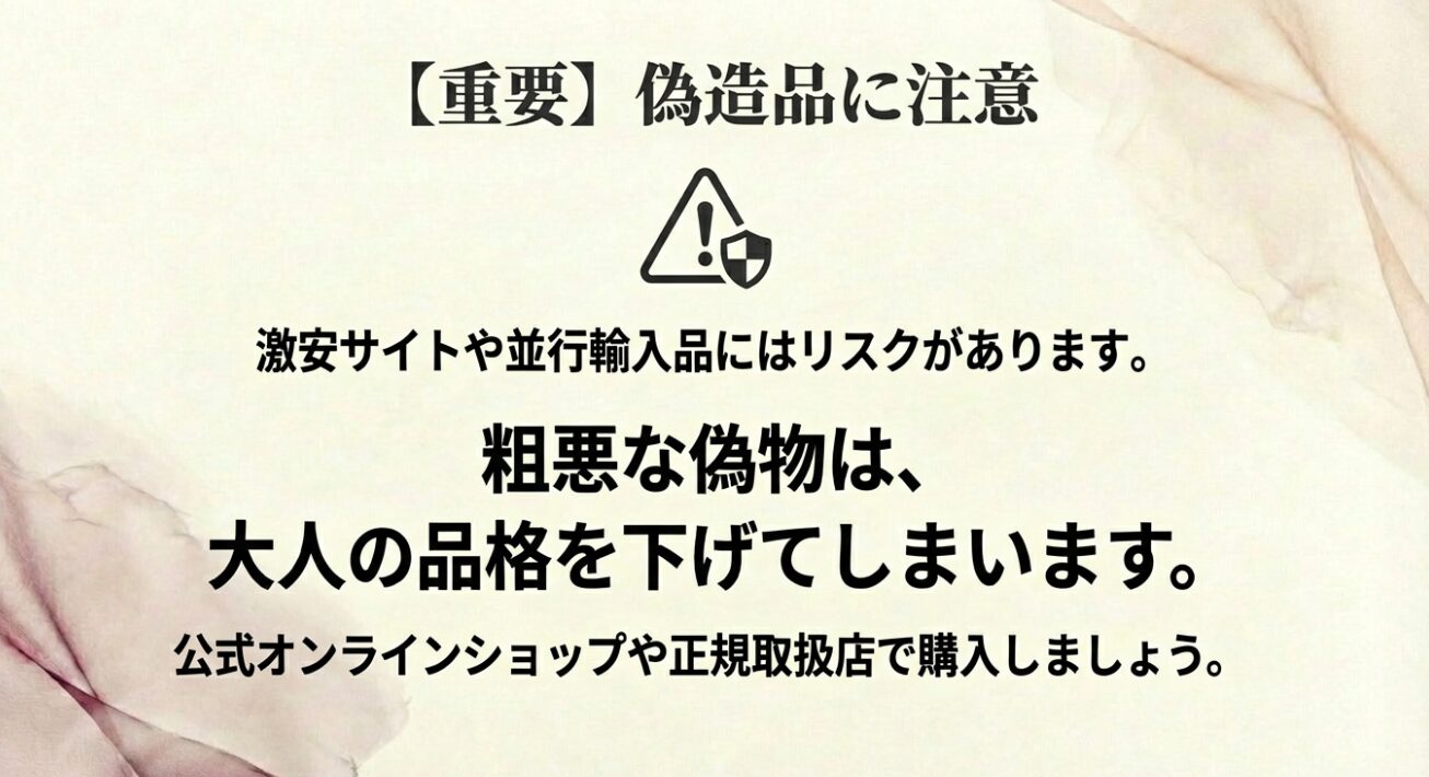 「激安」や「最安値」を謳う怪しいサイトで購入すると、写真とは全く異なる粗悪品が届くケースがあります。大人の女性として、ブランドへの敬意を払う意味でも、公式オンラインショップや正規取扱店を利用しましょう。