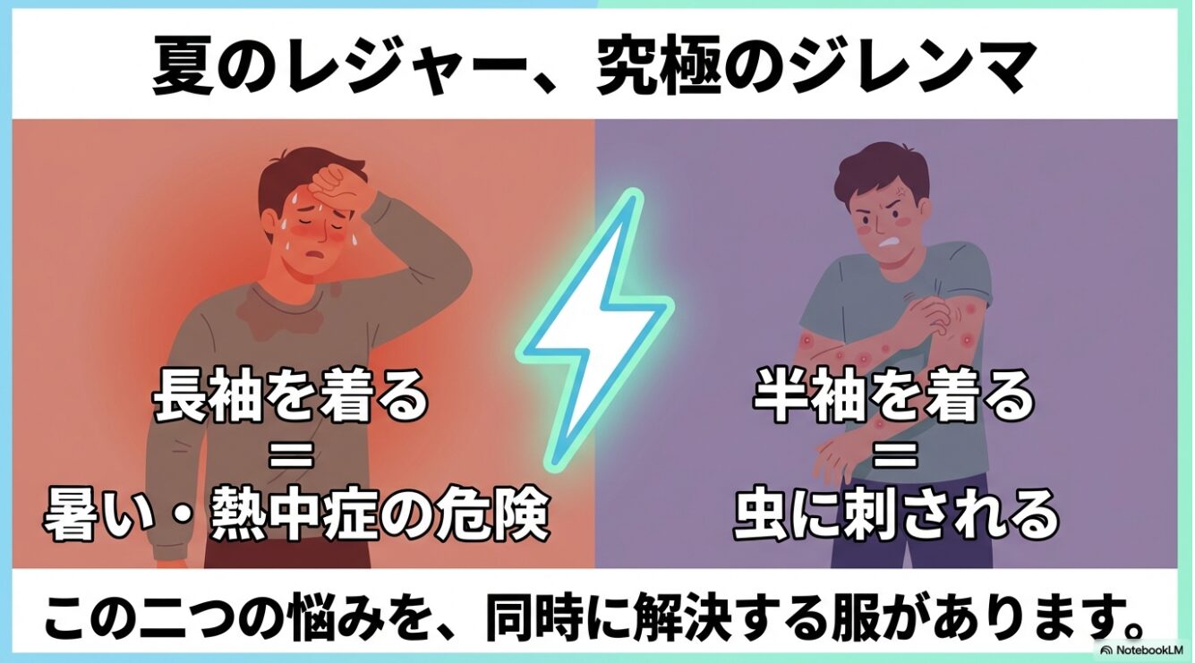 夏のレジャーで長袖を着るとなると、一番心配なのが「暑さ」と「熱中症」ですよね。いくら虫を防げても、サウナのように蒸れてしまっては元も子もありません。